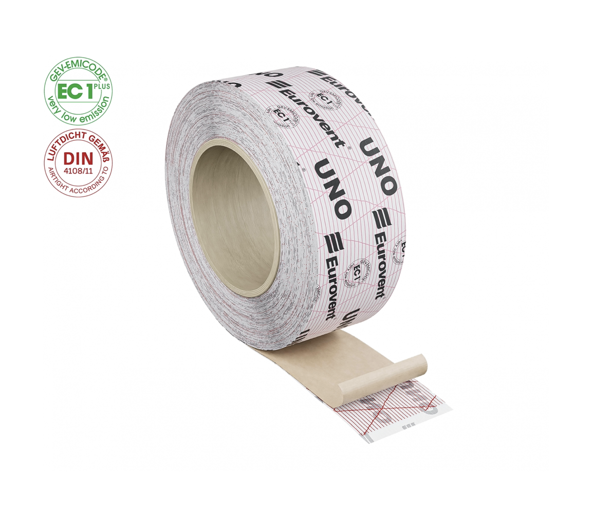 Eurovent UNO Single-Sided Adhesive Tape is a professional-grade sealing solution designed for airtight and moisture-resistant connections in modern construction. It is ideal for joining and repairing vapor barriers, membranes, and foils, ensuring long-term durability and protection. The tape offers excellent adhesion to a wide range of surfaces including wood, plastic, and metal, making it suitable for both residential and commercial projects. Resistant to aging, UV radiation, and extreme temperatures, Eurovent UNO guarantees reliable airtight and watertight performance. An essential accessory for energy-efficient and sustainable building envelopes.