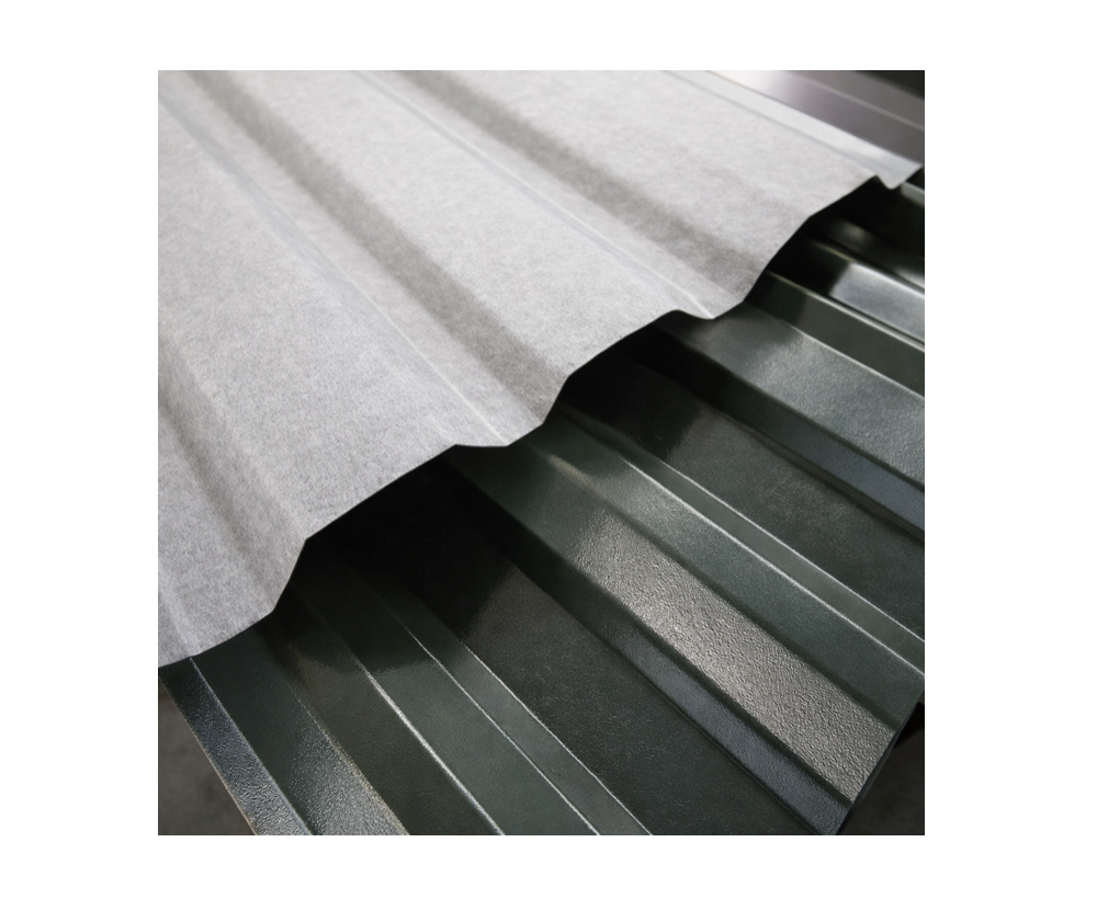 Manufactured from durable synthetic materials, the membrane is designed to be installed directly beneath steel roof sheets or cladding profiles. Its textured, absorbent surface captures condensation at the point of formation, reducing the risk of corrosion, dampness and long-term damage.